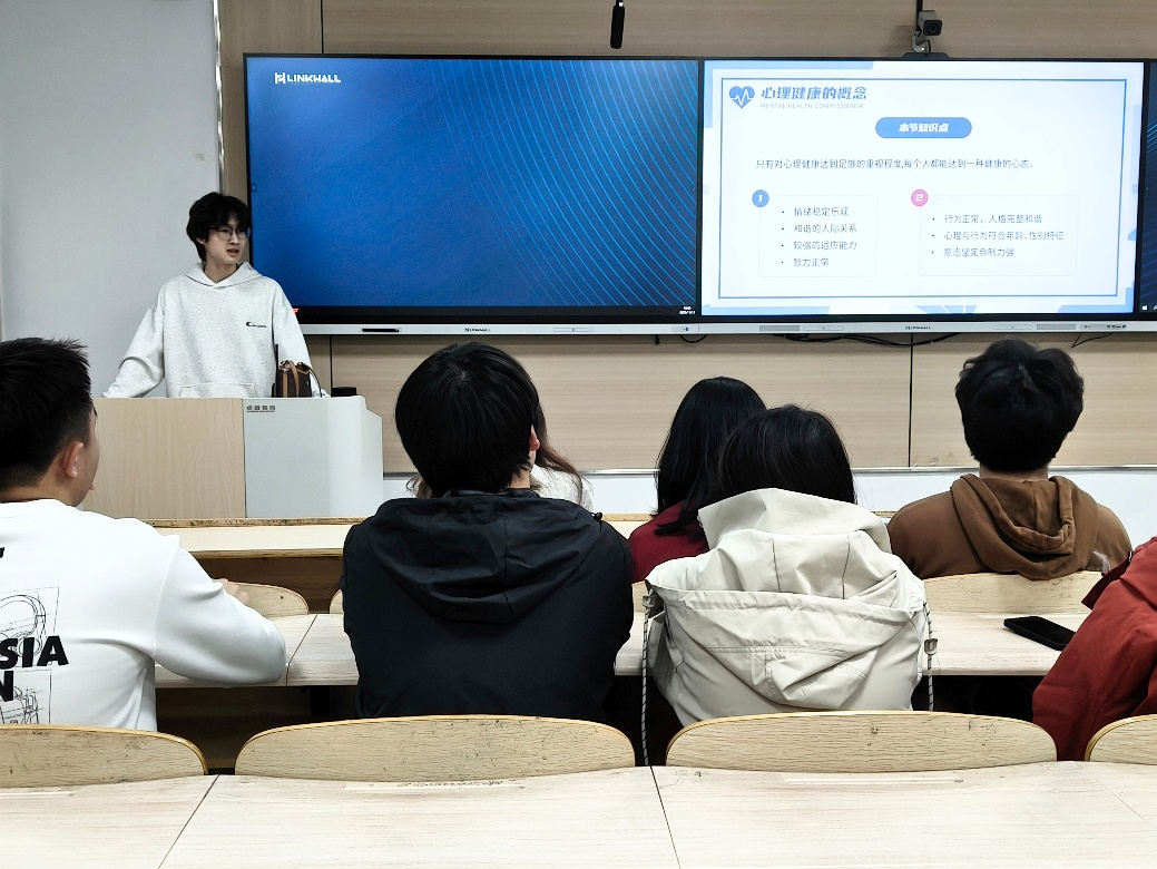 培训之初,心理部钱卓航同学率先登台分享。他以自己在心理帮扶工作中的亲身经历为切入点,用生动鲜活的叙事方式还原了与多名存在心理困扰的同学沟通、陪伴及提供帮助的完整过程让在场的心理委员们直观掌握了“如何帮、怎么帮、帮到什么程度”的具体方法,有效地破解了大家在以往工作中遇到的“想帮却不知从何下手”的难题。